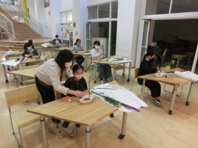 保健の大浦先生も教えてもらって花をいけていました。これまでのようにはできなくても、新しい活動を工夫してコロナ禍でもできるように進めていきます。