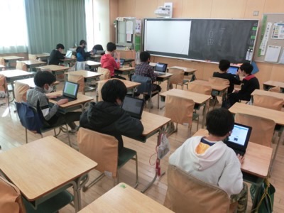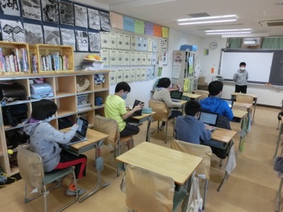 パソコンクラブも、一人1台と向き合って創作中。でも、全く会話がないわけではなく、画面を見たまま、子ども同士で会話はしています。