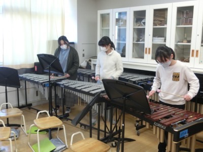 音楽クラブは「炎」のパート練習をしていました。管楽器なしで合奏します。