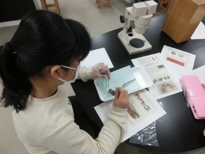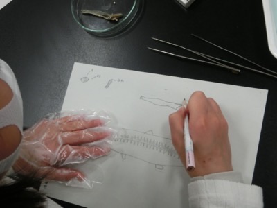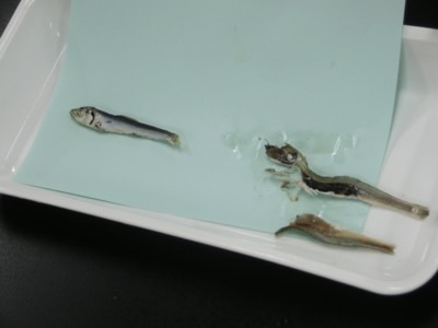 科学クラブは、イワシの解剖をしていました。