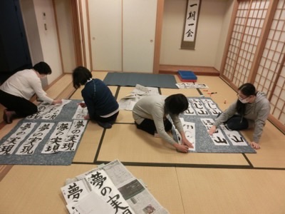 書き初めの展示準備