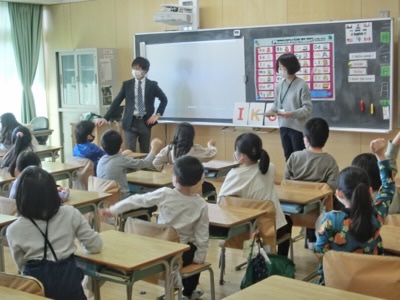 2-3は、担任の比留間先生とJTEのギベス先生の英語活動の授業です。