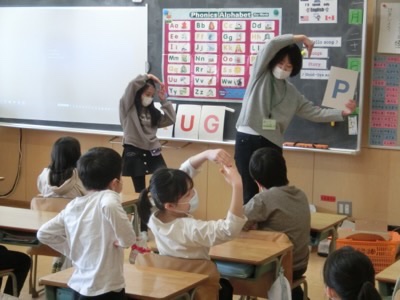今日は身体を動かしてアルファベットの形を覚えていました。