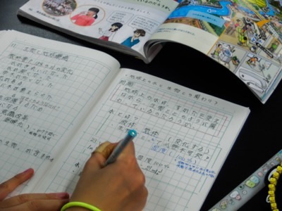 教科書の図を見ながら、海の水がどのように循環しているかをまとめていました。ノートがとても丁寧に書けていますね。