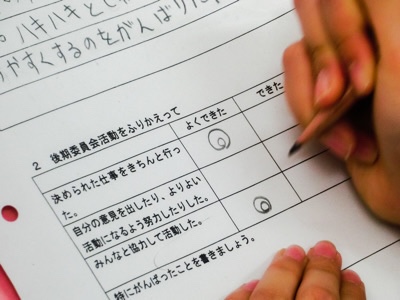 委員会活動の反省は、一人一人カードに自己評価を記入しました。