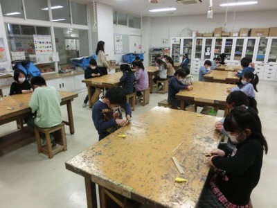 小刀の扱いが上手な子もいれば危なっかしい子もいました。