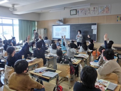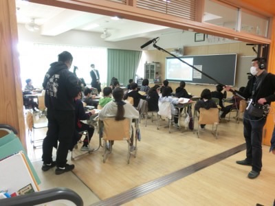 5-2の教室には、NHKの取材が入っています。映像教材を使って授業をしている様子を撮影していました。