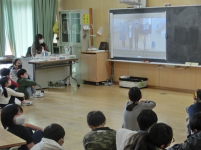2021-03-09 最後のたてわり班活動 6年生を送る会のあと、たてわり班に分かれて、班のリーダーだった6年生との最後の交流をしました。オンラインで「ジェスチャーゲーム」のルール説明をしています。 各たてわり班の教室で説明を聞いています。 ジェスチャーゲームの問題は、タブレットで出されます。 ジェスチャーをして楽しみました。最後にみんなで書いた感謝のメッセージを寄せ書きとして6年生に渡しました。 Home › 学校全体 › 最後のたてわり班活動 関連記事 明朝(24日)の登校について 今朝の全校朝会 百人一首大会 書き初めの展示準備 教科書配布初日 6年生を送る会 今日は春分の日