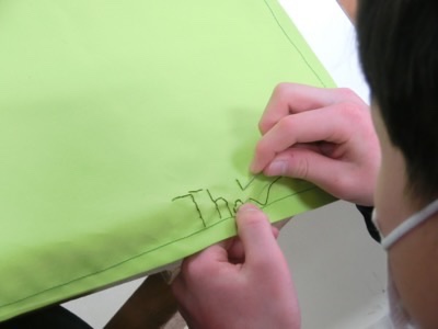 6-4は家庭科の授業でランチョンマットを作っていました。