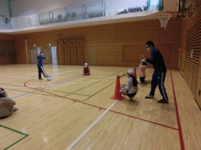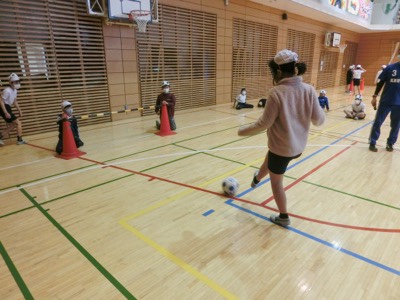 音だけを聞いてその方向に蹴るのですが、ボールに足を当てるのも難しいようでした。