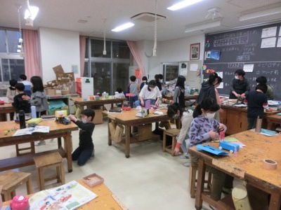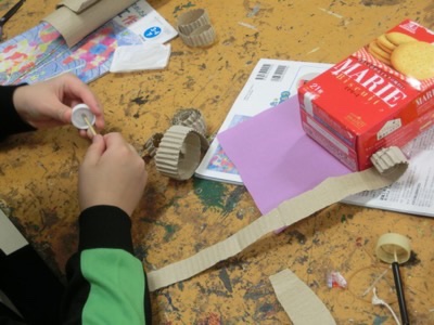 タイヤをどのように作るか、子どもたちの工夫が見られます。