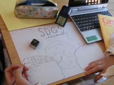 6-2は社会科の最後の学習「SDGsについて」。SDGsとは「Sustainable Development Goals(持続可能な開発目標)」の略称です。