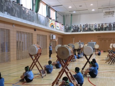 力強い寄せ太鼓がアリーナに響きました。