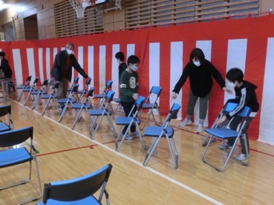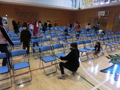2021-03-22 5年生が卒業式会場準備をしました 25日の卒業式に向けて、5年生が会場の準備をしてくれました。椅子やひな壇を並べます。 壇上の雑巾掛けもしました。 会場の椅子は、保護者の衣装が汚れないように全て拭き掃除をします。 施設管理のリンレイのみなさんも、先生たちと一緒に準備をしました。 卒業式まであと3日です。 ※昨日から、画像が1枚しかアップできない不具合が発生していました。現在は解消しています。ご迷惑をおかけしました。 Home › 5年 › 5年生が卒業式会場準備をしました 関連記事 健康朝会 運動会の係活動 5年生のAKP 今日の授業風景 書き初め 卒業式の通し練習 卒業式予行練習