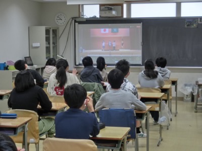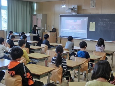 1-2の子どもたちが教室で見ています。見ている子どもたちの態度も立派です。成長しましたね。
