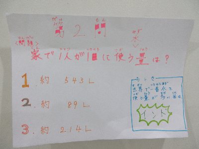 アリーナでは、入学してくる1年生用の書類や品物を配布する準備をします。スクリーンにどのようにセットすればよいかを示しているので、その通りに並べます。