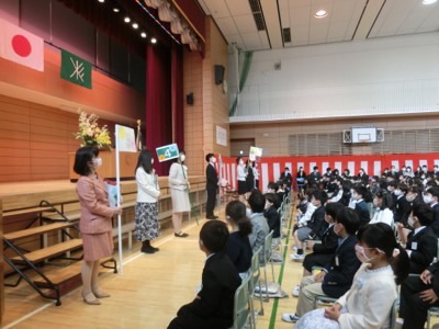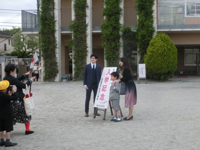 校庭では、家族で記念撮影をする姿が見られました。作っておいた記念写真用の立て看板を活用してもらえてよかったです。明日から本格的に学校生活が始まります。