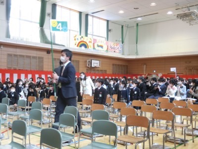 入学式後の各クラスの様子を見てきました。これは1-1の安藤先生のクラスです。
