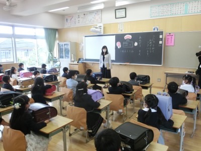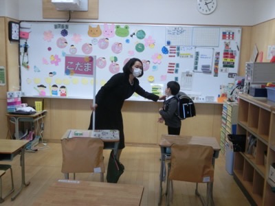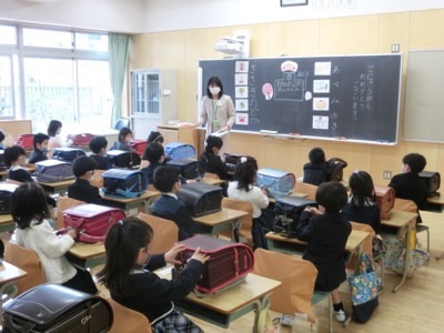 1-4の担任は佐々木先生。もう一人、阿部先生もいます。