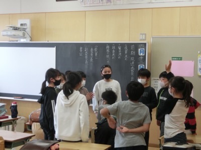 これは運動委員会です。委員長に立候補した子どもが決意を話しています。