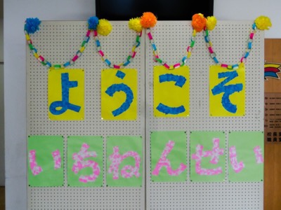 こだま学級は、歓迎パネルを作ってエントランスに飾りました。