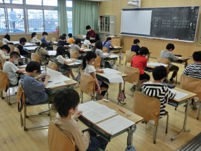 こちらは3-4です。3年生はこういう学力調査は初めてなので、かなり戸惑っていました。