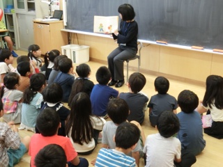 素話は、読み聞かせではなく、お話を語ります。今日は、ルーマニアの昔話「りこうなおきさき」、日本の昔話「みそ買い橋」、タイの昔話「マカトのたから貝」の3つのお話を聞かせてもらいました。