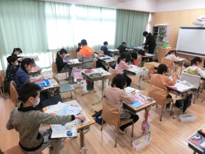 最初に避難訓練をすることになっています。津波が来た時のために、裏山の上まで避難する訓練を行いました。