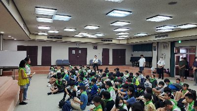 各班の生活係が、弓ヶ浜クラブの方から寝具の扱いについて説明を受けました。メモを取って、部屋に帰ってみんなに説明します。