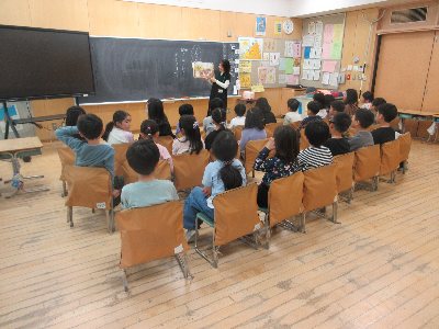 図工室が幻想的な空間になっています。3-4が作品を鑑賞していました。