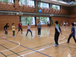 アリーナでは、こだま学級が体育をしていました。まずは準備運動。