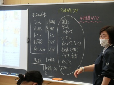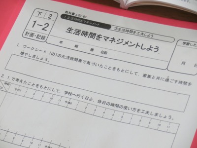 6-2の家庭科の授業では、「自分の生活をマネジメントする」という学習をしていました。