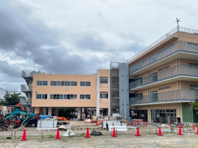 一方、増築校舎の方は、校庭のフェンスが取り除かれて全体が見えるようになりました。