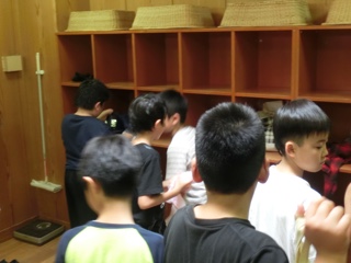 書道クラブは、姿勢良く真剣にお手本に取り組んでいました。