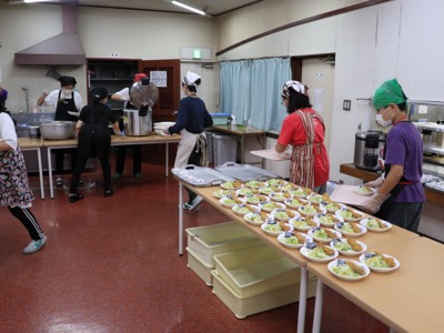 夕食の前に、各部屋の食事係が配膳をしました。 1人前ずつセットして運びます。 夕...