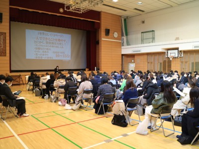 2023-02-14 新一年保護者説明会 今度の4月に入学してくる令和5年度新一年生の保護者説明会がありました。 入学に向けての準備や手続き等について説明をしました。来年度の1年生は約100名。3クラス編成となります。 Home › 1年 › 新一年保護者説明会 関連記事 今日の授業風景 (1・2年生)学校探検 久しぶりの晴天 土曜授業5年生の茶道体験 1年生と6年生が対面しました 今日の授業風景(2月14日) ハッピーブックタイム