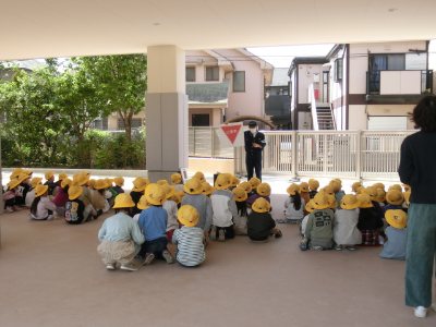 荻窪警察にご協力いただき、はじめに交通安全のお話をしていただきました。「三角のマ