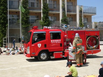 荻窪消防署のご協力で、消防写生会を行いました。大きな消防車の登場に子どもたちは大