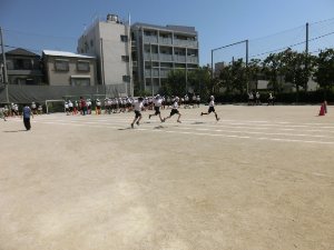 写真は、5年生の50m走計測前の様子です。全部で8種目、5月26日頃まで取り組んでいきます。