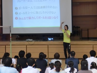 7月1日(土)学校支援本部事業(あまぬまハッピィさたでい)として、元バレーボール日本代表大山加奈さんをお迎えし、ソフトバレー体験を行いました。