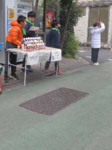 2024-02-02 (5年生)AKP販売 今日は、5年生の天沼会社経営プロジェクト販売日第1日目でした。物品やチラシなどを持ち出発!駅前広場や近隣商店街などで販売させていただきました。 今年の商品は、「天沼ソーダキャンドル」!蓋をとると、アロマの香りがしてリラックスしてもらえるようにと言う工夫も加えています。次回の販売は、2月6日です。よろしければ、お買い求めください。 Home › 5年 › (5年生)AKP販売 関連記事 今日の授業風景 (5年生)視力検査 百人一首模範演技 11月の委員会活動 今日の授業風景(5月26日) (3・5年生)百人一首模範演技 (5年生)家庭科 快適に過ごす住まい方
