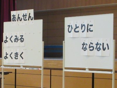 危険を感じてまわりに意識が向けられるように、だるまさんが転んだのフレーズを取り入れながら、「まわりをよく見る、よく聞く」ことなどを教えていただきました。