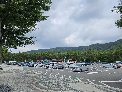 こだま学級(3年生以上)の子どもたちと連合移動教室で富士に来ています。鳴沢氷穴に到着し、これからハイキングです。(写真は道の駅なるさわです。)