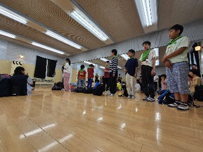 宿舎に到着して開園式を行いました。今回の連合移動教室には、杉三小・桃二小・高円寺学園が一緒に来ています。宿舎の方のお話の後、学校紹介で挨拶をしました。