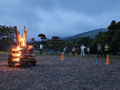 昨日の夜は、4校合同でキャンプファイアーを楽しみました。点火式の後は、燃えろよ燃...