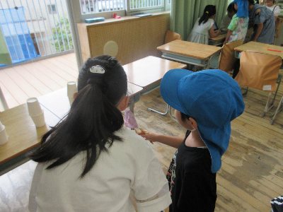 今日は、幼保小連携の取組の一つとして近隣3つの保育園の幼児の皆さんが来校し3年生
