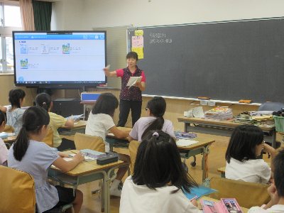 各教室に、新しい液晶パネル型電子黒板システムが入りました。これまでの物はプロジェクター型でしたが、液晶パネルになりとても見やすいです。
