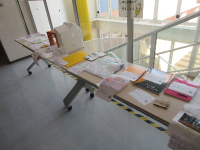 各階に夏休みの自由研究などの作品が並んでいます。ものづくりの作品や旅行記、テーマを決めての研究物など、作品は多種多様で力作ぞろいです。