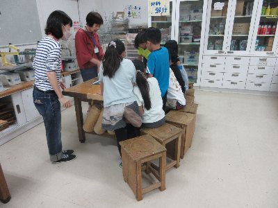 今日は友達とかかわり作品をみる楽しさを味わうことなどを目的として、美術鑑賞教室を行いました。講師は、地域のアートわっかの皆さんです。
