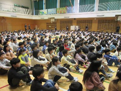 11月はふれあい月間といって、友達と助け合いみんなで仲良く生活して、いじめを絶対にしないでいこうと確認する大切な月です。この事について子どもたちに考えてもらうため、5日(火)の全校朝会、「私のせいじゃない」という本の読み聞かせをしました。
